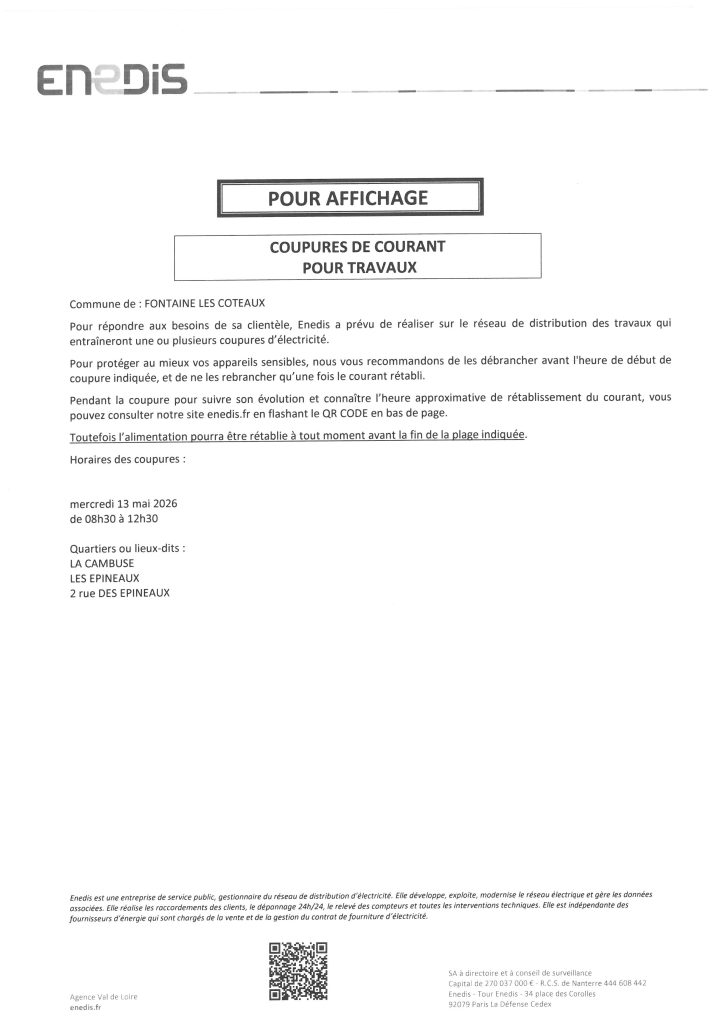 Coupures de courant pour travaux